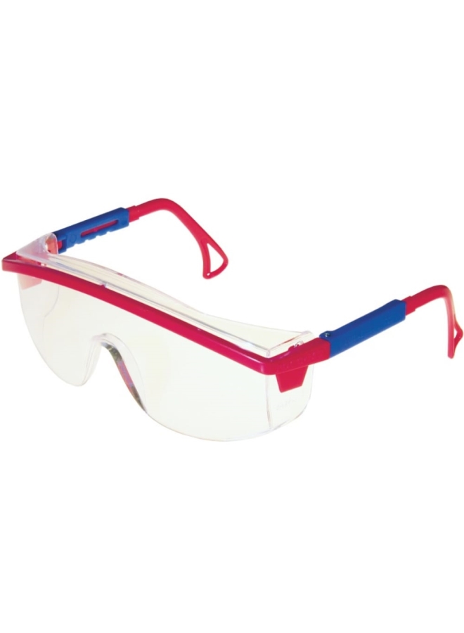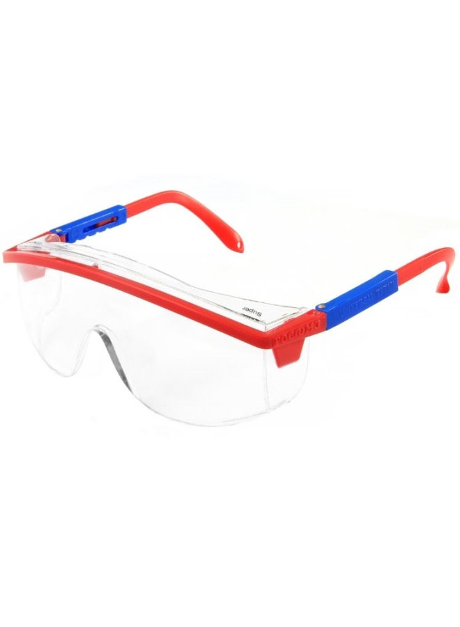 Панорамные линзы с двухсторонним покрытием от запотевания, царапин, стойкое к химическому воздействию масел и СОЖ. Три уровня защиты: фронтальный, боковой, сверху. Дужки двухцветные сине-красные, с регулировкой длины заушников.